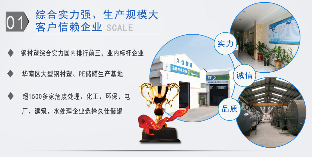 公司有鋼襯塑PE/PO、PE全塑、碳鋼、不銹鋼四大系列100多個品種,專注于常壓儲存容器生產(chǎn),其產(chǎn)品包括鋼襯塑儲罐管口一體成型PE儲罐碳鋼儲罐不銹鋼儲罐、反應(yīng)釜、攪拌罐、離子交換柱、鋼襯PE/PO儲罐塑料儲罐鹽酸儲罐硫酸儲罐等等。更大限度滿足廣大客戶的各種需求,同時可以根據(jù)客戶的需要加工定制各種防腐設(shè)備。